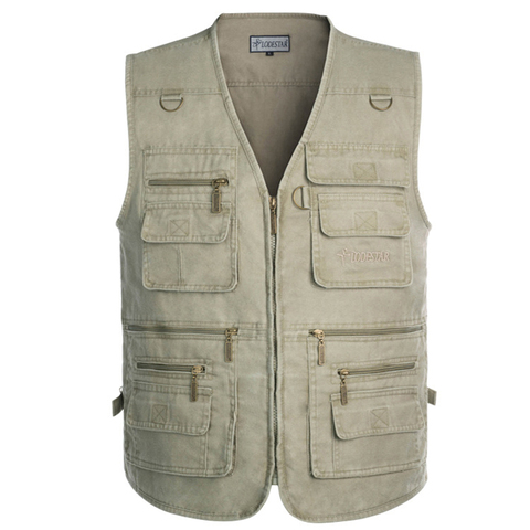 เสื้อกั๊กผ้าฝ้ายสำหรับผู้ชายเสื้อกั๊กสำหรับออกล่าเหยื่อตกปลากลางแจ้งมีกระเป๋าหลายใบไซส์ใหญ่กันลมสไตล์ลำลองออกแบบได้ตามต้องการ